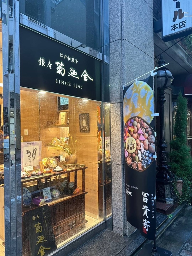 菊廼舎家創業於明治23年(1890年),是一間銀座百年老店,最受歡迎的菓子禮盒,就是富貴寄系列,這次2023秋季連線西村媽媽親自到老店拜訪,試吃挑選,本店的「揚げ饅頭」很好吃,有機會到本店一定要去試吃看看,女将さん還遞了名片給我,聊一下天,我相信我每次連線都會去光顧。